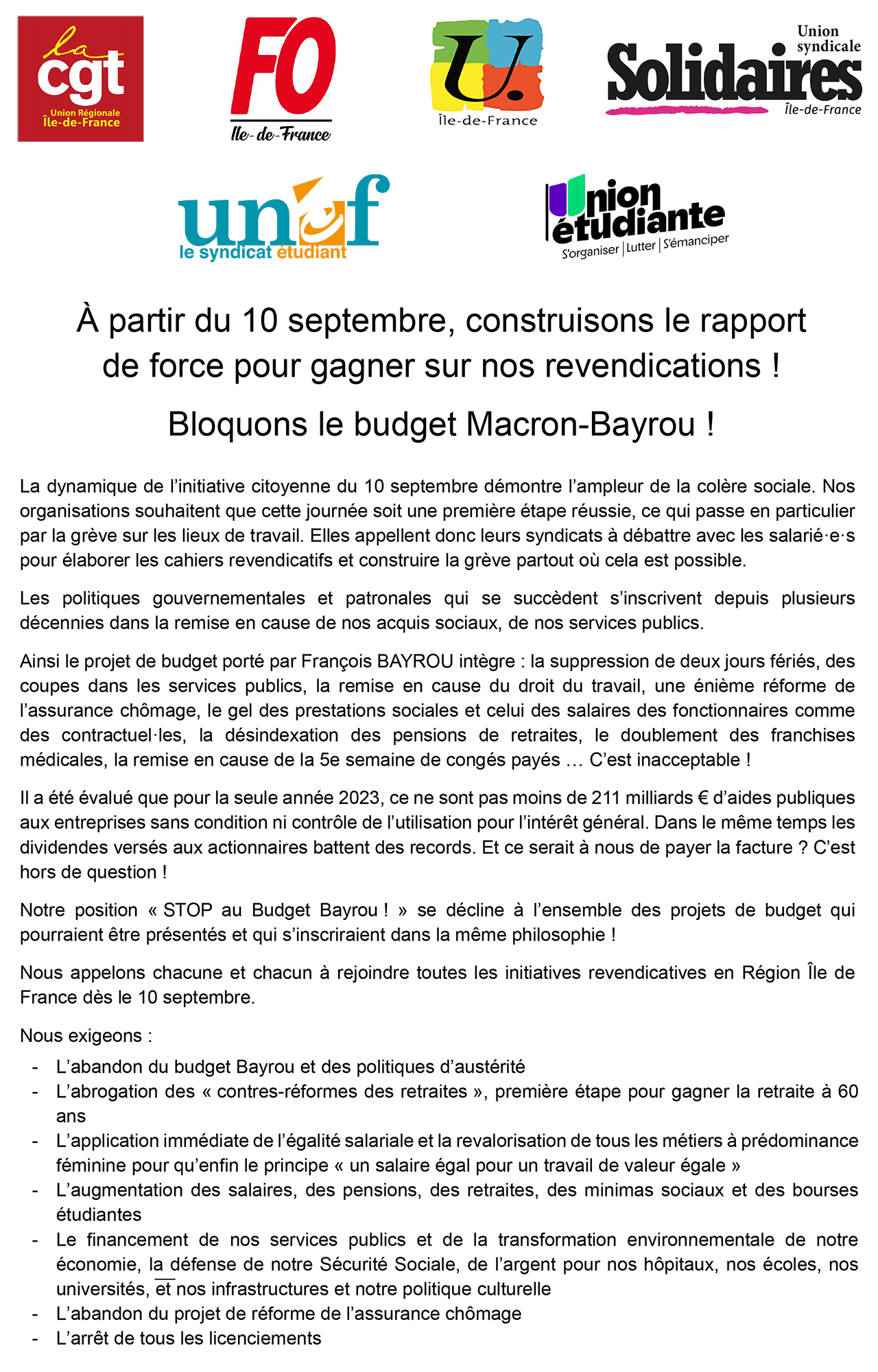 À partir du 10 septembre, construisons le rapport de force pour gagner sur nos revendications !